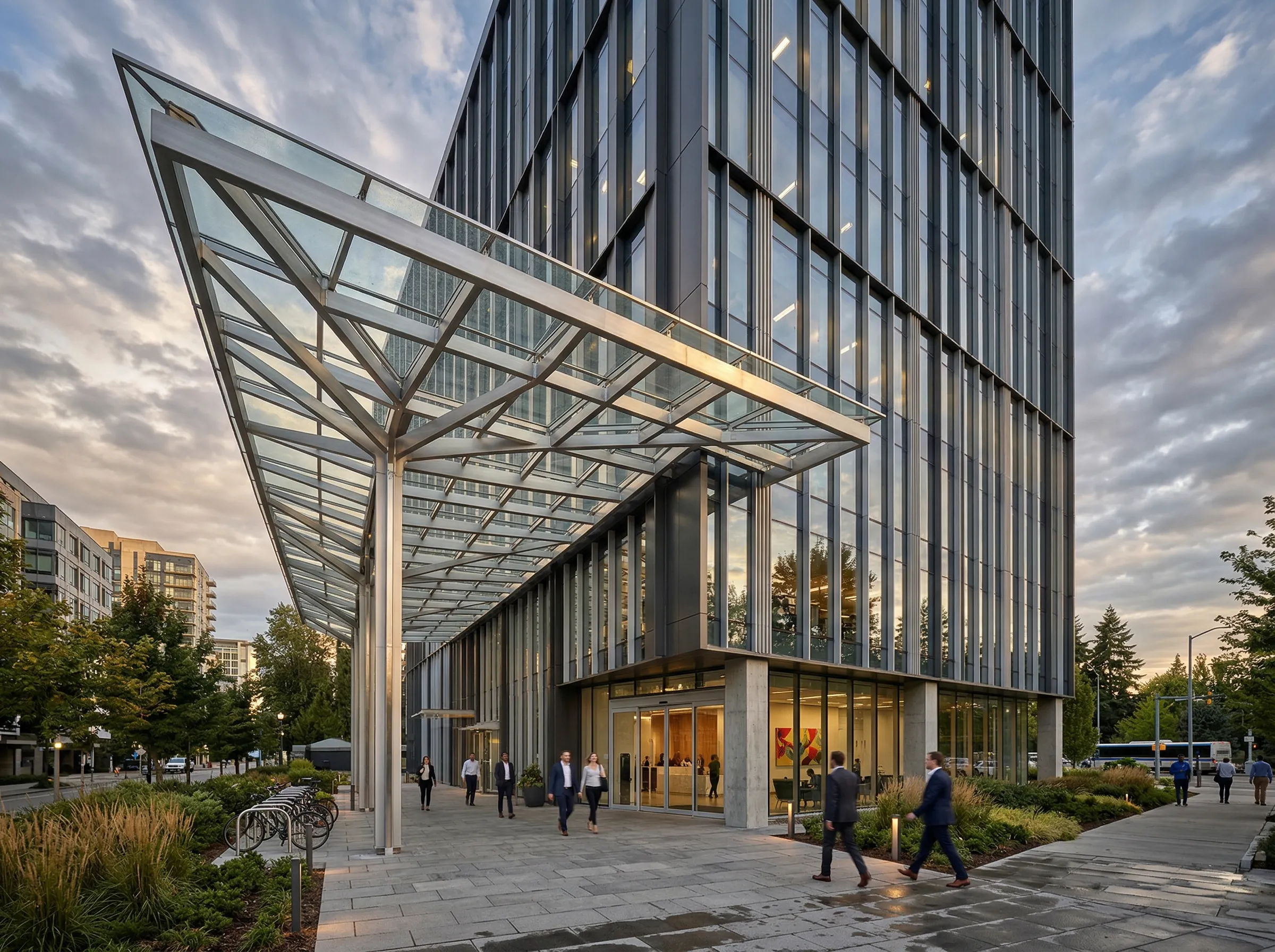 Canopies are widely used in modern architecture to create functional entrance coverings and elegant facade elements that complement contemporary building designs.